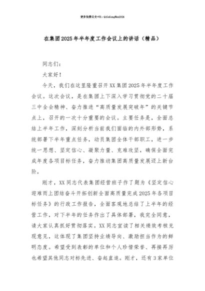 【七哥公文】2025年:【七哥公文】在集团2025年半年度工作会议上的讲话(精品)+更多免费公文+VX:QiGeGongWen2024+更多免费公文+VX:QiGeGongWen2024