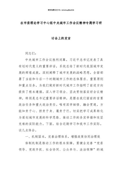 【七哥公文】2025年:【七哥公文】在市委理论学习中心组中央城市工作会议精神专题学习研讨会上的发言+更多免费公文+VX:QiGeGongWen2024+更多免费公文+VX:QiGeGongWen2024