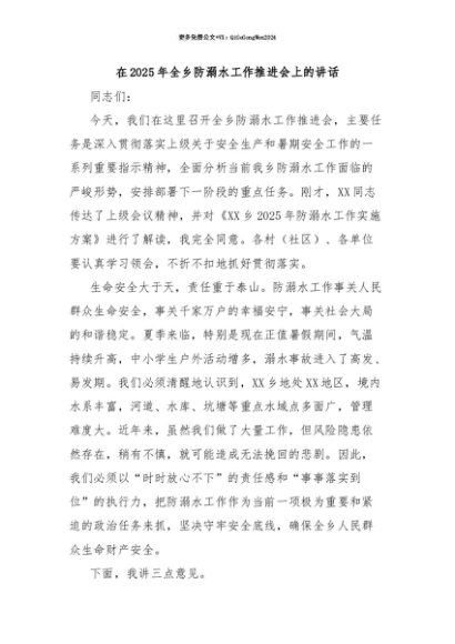 【七哥公文】2025年:【七哥公文】在2025年全乡防溺水工作推进会上的讲话+更多免费公文+VX:QiGeGongWen2024+更多免费公文+VX:QiGeGongWen2024