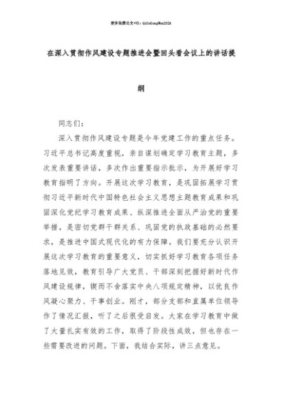 【七哥公文】2025年:【七哥公文】在深入贯彻作风建设专题推进会暨回头看会议上的讲话提纲+更多免费公文+VX:QiGeGongWen2024+更多免费公文+VX:QiGeGongWen2024