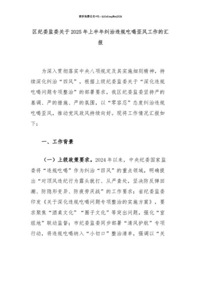 【七哥公文】2025年:【七哥公文】区纪委监委关于2025年上半年纠治违规吃喝歪风工作的汇报+更多免费公文+VX:QiGeGongWen2024+更多免费公文+VX:QiGeGongWen2024