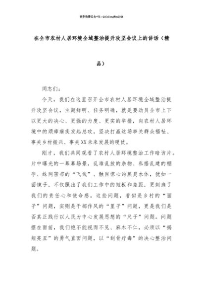 【七哥公文】2025年:【七哥公文】在全市农村人居环境全域整治提升攻坚会议上的讲话(精品)+更多免费公文+VX:QiGeGongWen2024+更多免费公文+VX:QiGeGongWen2024