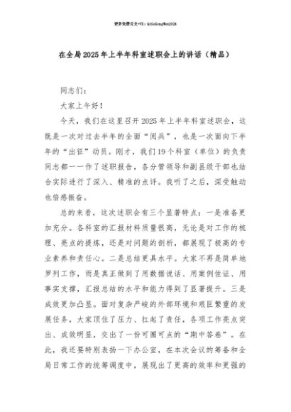 【七哥公文】2025年:【七哥公文】在全局2025年上半年科室述职会上的讲话(精品)+更多免费公文+VX:QiGeGongWen2024+更多免费公文+VX:QiGeGongWen2024