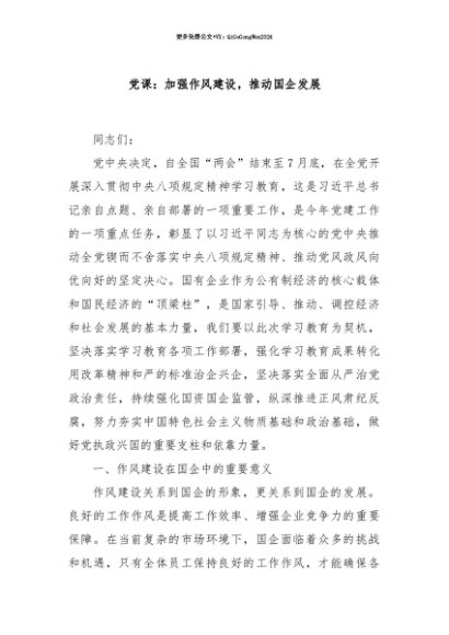 【七哥公文】2025年:【七哥公文】党课:加强作风建设,推动国企发展+更多免费公文+VX:QiGeGongWen2024+更多免费公文+VX:QiGeGongWen2024