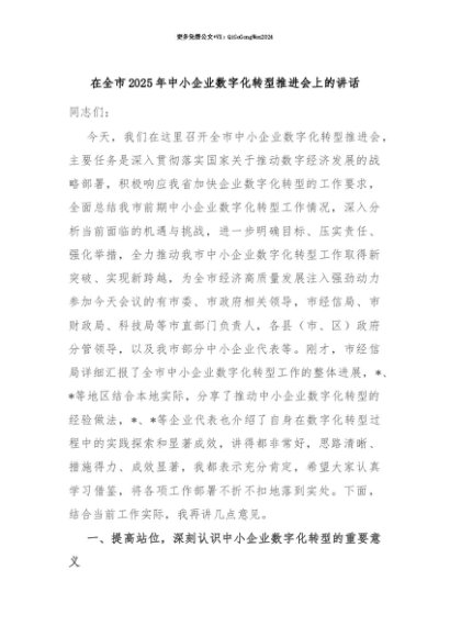 【七哥公文】2025年:【七哥公文】在全市2025年中小企业数字化转型推进会上的讲话+更多免费公文+VX:QiGeGongWen2024+更多免费公文+VX:QiGeGongWen2024