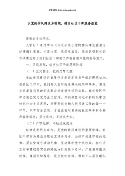 【七哥公文】2025年:【七哥公文】以党的作风建设为引领,提升社区干部服务效能+更多免费公文+VX:QiGeGongWen2024+更多免费公文+VX:QiGeGongWen2024