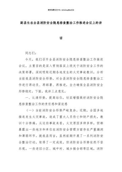 【七哥公文】2025年:【七哥公文】副县长在全县消防安全隐患排查整治工作推进会议上的讲话+更多免费公文+VX:QiGeGongWen2024+更多免费公文+VX:QiGeGongWen2024