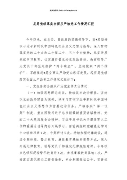 【七哥公文】2025年:【七哥公文】县局党组落实全面从严治党工作情况汇报+更多免费公文+VX:QiGeGongWen2024+更多免费公文+VX:QiGeGongWen2024
