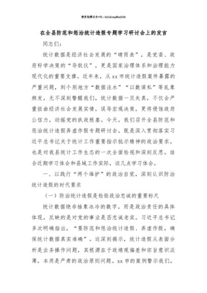 【七哥公文】2025年:【七哥公文】在全县防范和惩治统计造假专题学习研讨会上的发言+更多免费公文+VX:QiGeGongWen2024+更多免费公文+VX:QiGeGongWen2024