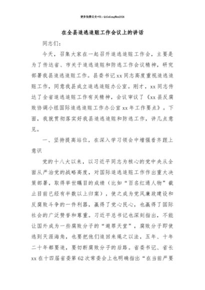 【七哥公文】2025年:【七哥公文】在全县追逃追赃工作会议上的讲话+更多免费公文+VX:QiGeGongWen2024+更多免费公文+VX:QiGeGongWen2024