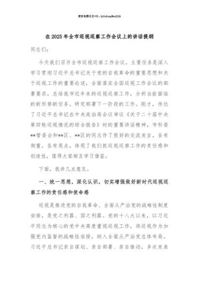 【七哥公文】2025年:【七哥公文】在2025年全市巡视巡察工作会议上的讲话提纲+更多免费公文+VX:QiGeGongWen2024+更多免费公文+VX:QiGeGongWen2024