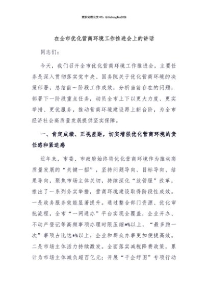 【七哥公文】2025年:【七哥公文】在全市优化营商环境工作推进会上的讲话+更多免费公文+VX:QiGeGongWen2024+更多免费公文+VX:QiGeGongWen2024