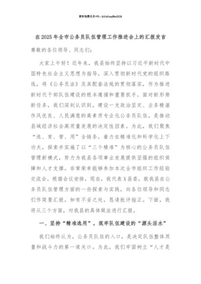 【七哥公文】2025年:【七哥公文】在2025年全市公务员队伍管理工作推进会上的汇报发言+更多免费公文+VX:QiGeGongWen2024+更多免费公文+VX:QiGeGongWen2024