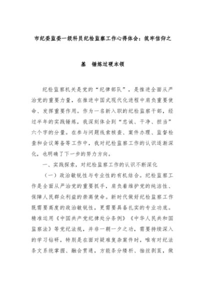 【七哥公文】2025年:市纪委监委一级科员纪检监察工作心得体会:筑牢信仰之基 锤炼过硬本领+更多免费公文+VX:QiGeGongWen2024