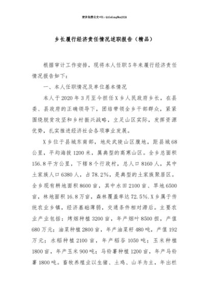【七哥公文】2025年:【七哥公文】乡长履行经济责任情况述职报告(精品)+更多免费公文+VX:QiGeGongWen2024+更多免费公文+VX:QiGeGongWen2024