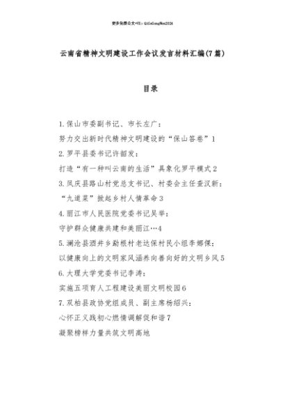 【七哥公文】2025年:【七哥公文】(7篇)云南省精神文明建设工作会议发言材料汇编+更多免费公文+VX:QiGeGongWen2024+更多免费公文+VX:QiGeGongWen2024