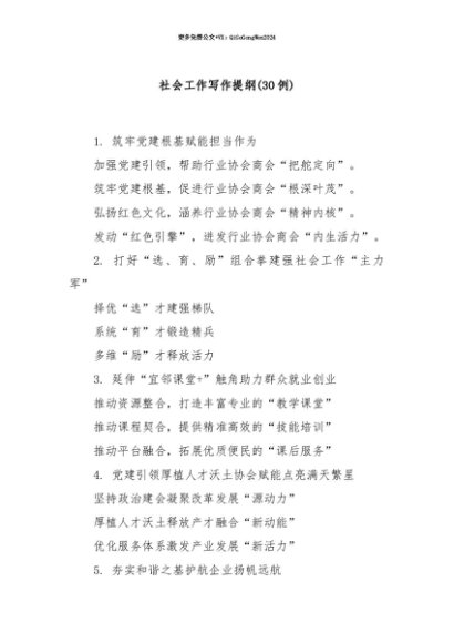 【七哥公文】2025年:【七哥公文】(30例)社会工作写作提纲+更多免费公文+VX:QiGeGongWen2024+更多免费公文+VX:QiGeGongWen2024