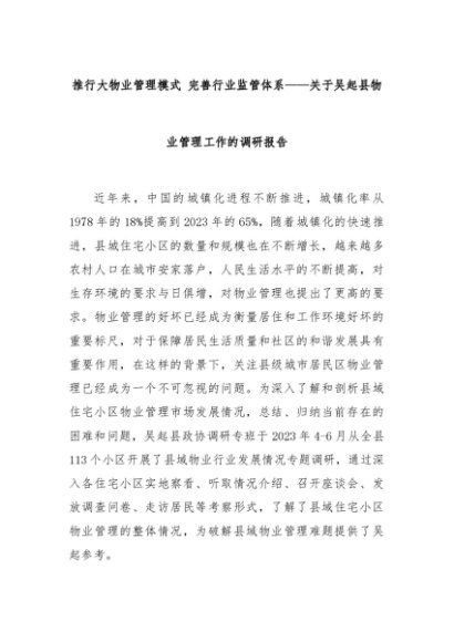 【七哥公文】2025年:推行大物业管理模式 完善行业监管体系——关于吴起县物业管理工作的调研报告+更多免费公文+VX:QiGeGongWen2024