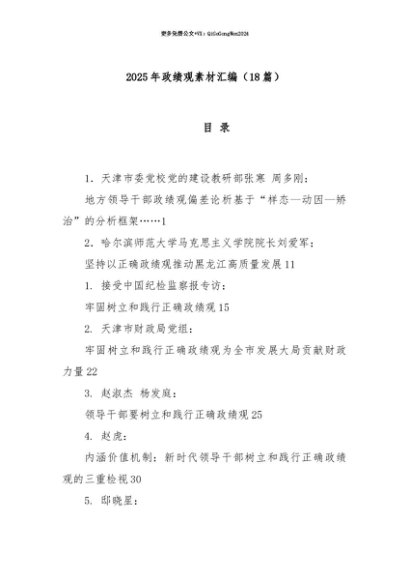 【七哥公文】2025年:【七哥公文】(18篇)2025年政绩观素材汇编+更多免费公文+VX:QiGeGongWen2024+更多免费公文+VX:QiGeGongWen2024