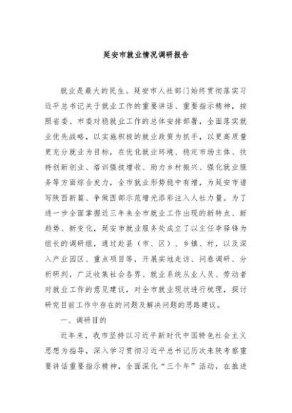 / 【七哥公文】2025年:延安市就业情况调研报告+更多免费公文+VX:QiGeGongWen2024