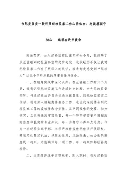 【七哥公文】2025年:市纪委监委一级科员纪检监察工作心得体会:忠诚履职守初心 砥砺奋进担使命+更多免费公文+VX:QiGeGongWen2024