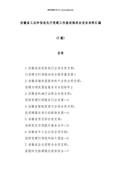 【七哥公文】2025年:【七哥公文】(7篇)安徽省工业和信息化厅党建工作座谈推进会发言材料汇编+更多免费公文+VX:QiGeGongWen2024+更多免费公文+VX:QiGeGongWen2024