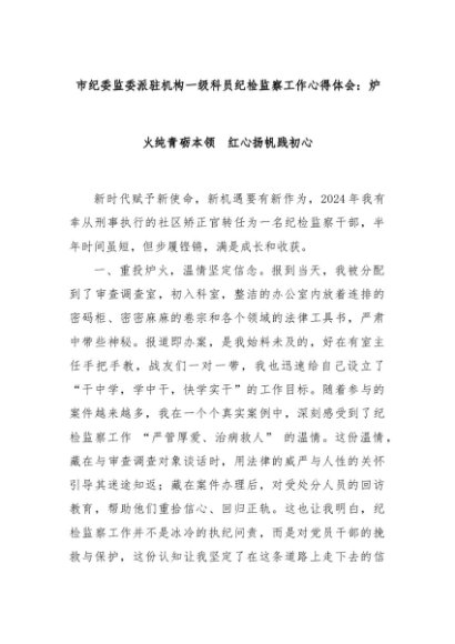 【七哥公文】2025年:市纪委监委派驻机构一级科员纪检监察工作心得体会:炉火纯青砺本领 红心扬帆践初心+更多免费公文+VX:QiGeGongWen2024