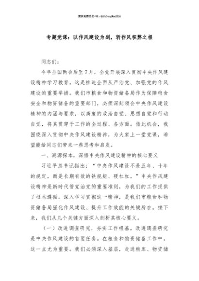 【七哥公文】2025年:【七哥公文】专题党课:以作风建设为剑,斩作风积弊之根+更多免费公文+VX:QiGeGongWen2024+更多免费公文+VX:QiGeGongWen2024