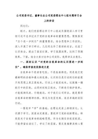【七哥公文】2025年:公司党委书记、董事长在公司党委理论中心组专题学习会上的讲话+更多免费公文+VX:QiGeGongWen2024