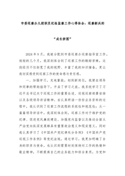 【七哥公文】2025年:市委巡察办九级职员纪检监察工作心得体会:巡察新兵的“成长拼图”+更多免费公文+VX:QiGeGongWen2024