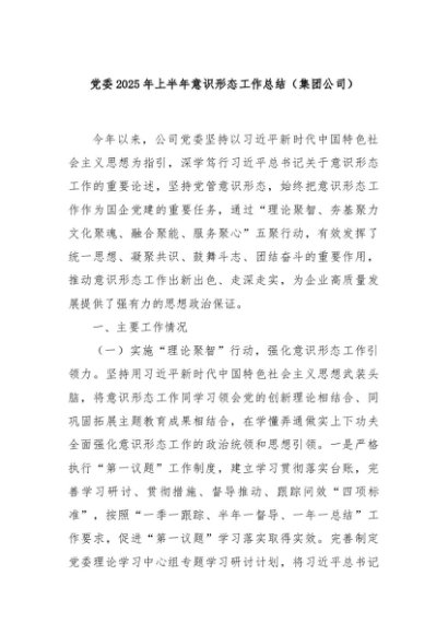 / 【七哥公文】2025年:党委2025年上半年意识形态工作总结(集团公司)+更多免费公文+VX:QiGeGongWen2024