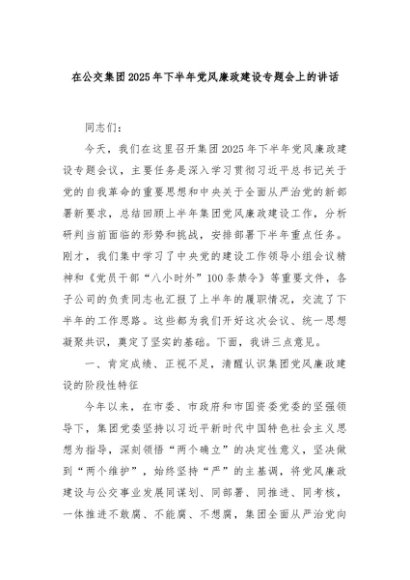 【七哥公文】2025年:在公交集团2025年下半年党风廉政建设专题会上的讲话+更多免费公文+VX:QiGeGongWen2024