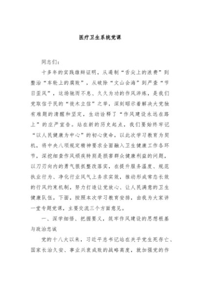 【七哥公文】2025年:医疗卫生系统党课+更多免费公文+VX:QiGeGongWen2024