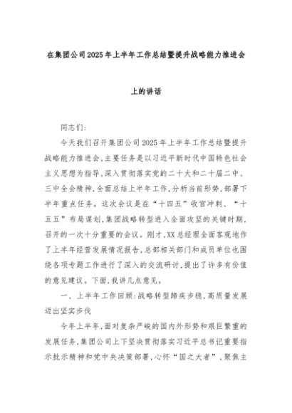 【七哥公文】2025年:在集团公司2025年上半年工作总结暨提升战略能力推进会上的讲话+更多免费公文+VX:QiGeGongWen2024