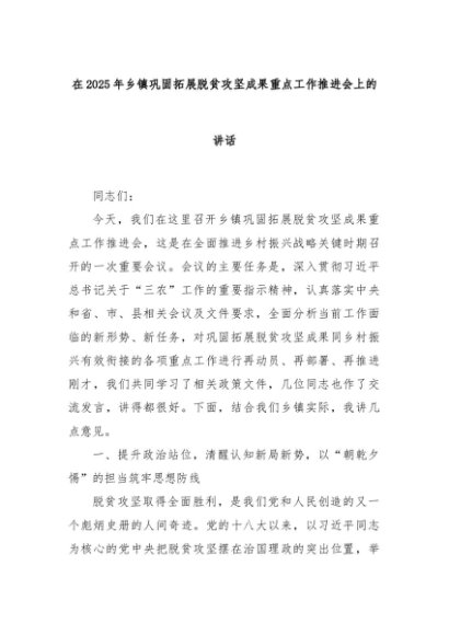 【七哥公文】2025年:在2025年乡镇巩固拓展脱贫攻坚成果重点工作推进会上的讲话+更多免费公文+VX:QiGeGongWen2024