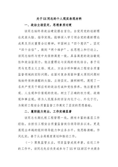 / 【七哥公文】2025年:关于XX同志的个人现实表现材料+更多免费公文+VX:QiGeGongWen2024