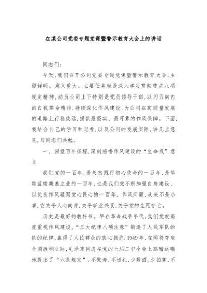 / 【七哥公文】2025年:在某公司党委专题党课暨警示教育大会上的讲话+更多免费公文+VX:QiGeGongWen2024