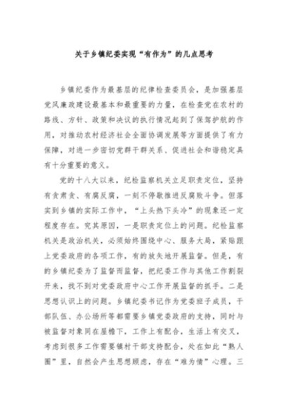 / 【七哥公文】2025年:关于乡镇纪委实现“有作为”的几点思考+更多免费公文+VX:QiGeGongWen2024