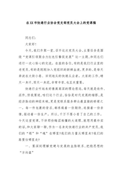 / 【七哥公文】2025年:在XX市快递行业协会党支部党员大会上的党课稿+更多免费公文+VX:QiGeGongWen2024