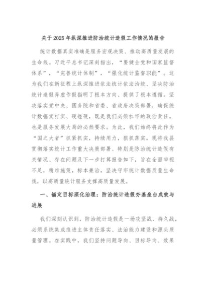 / 【七哥公文】2025年:关于2025年纵深推进防治统计造假工作情况的报告+更多免费公文+VX:QiGeGongWen2024