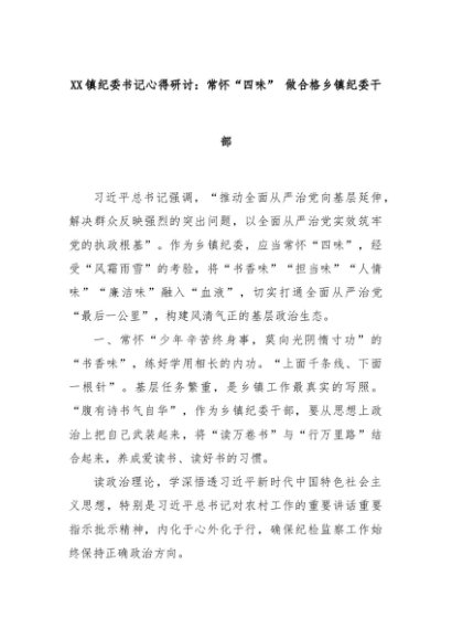 【七哥公文】2025年:XX镇纪委书记心得研讨:常怀“四味” 做合格乡镇纪委干部+更多免费公文+VX:QiGeGongWen2024