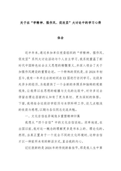 【七哥公文】2025年:关于在“学精神、强作风、促攻坚”大讨论中的学习心得体会+更多免费公文+VX:QiGeGongWen2024