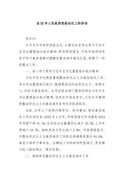 / 【七哥公文】2025年:在XX市人民政府党组会议上的讲话+更多免费公文+VX:QiGeGongWen2024