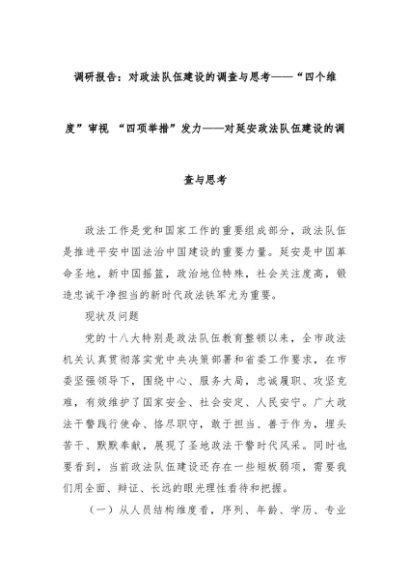 【七哥公文】2025年:调研报告:对政法队伍建设的调查与思考——“四个维度”审视 “四项举措”发力——对延安政法队伍建设的调查与思考+更多免费公文+VX:QiGeGongWen2024