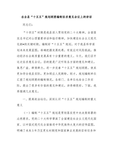 / 【七哥公文】2025年:在全县“十五五”规划纲要编制征求意见会议上的讲话+更多免费公文+VX:QiGeGongWen2024