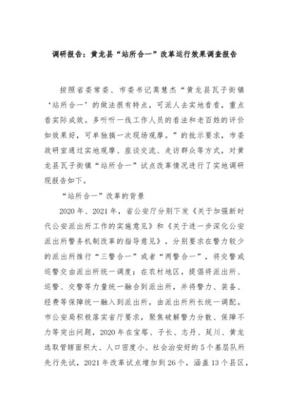 / 【七哥公文】2025年:调研报告:黄龙县“站所合一”改革运行效果调查报告+更多免费公文+VX:QiGeGongWen2024