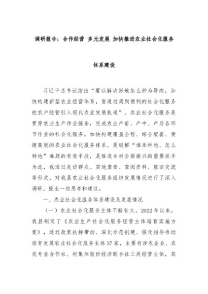 【七哥公文】2025年:调研报告:合作经营 多元发展 加快推进农业社会化服务体系建设+更多免费公文+VX:QiGeGongWen2024