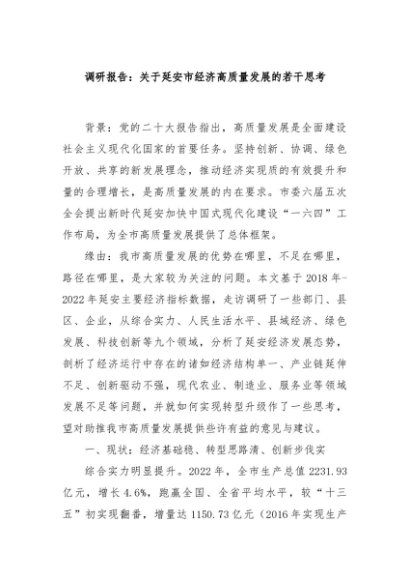 【七哥公文】2025年:调研报告:关于延安市经济高质量发展的若干思考+更多免费公文+VX:QiGeGongWen2024