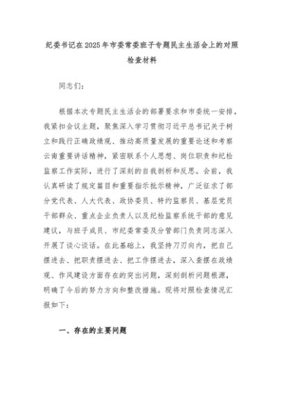 【七哥公文】2025年:纪委书记在2025年市委常委班子专题民主生活会上的对照检查材料+更多免费公文+VX:QiGeGongWen2024