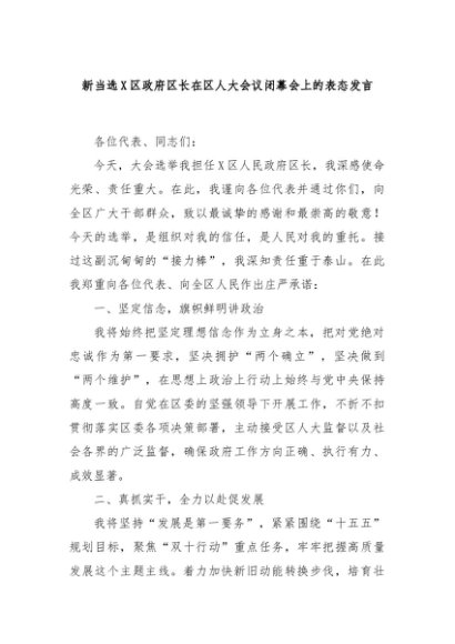 / 【七哥公文】2025年:新当选X区政府区长在区人大会议闭幕会上的表态发言+更多免费公文+VX:QiGeGongWen2024
